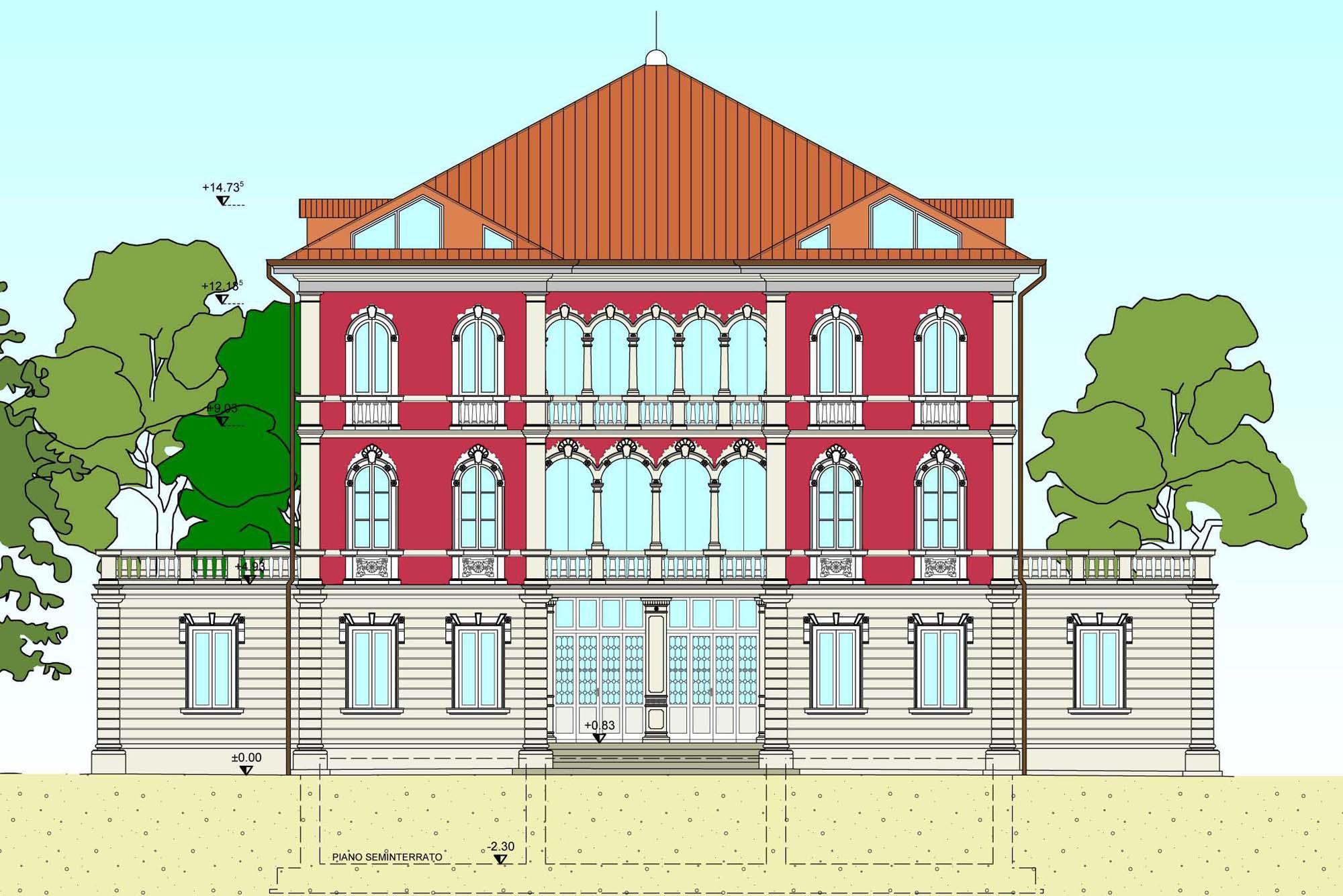 Anche il parco, elemento di pregio della proprietà, verrà riqualificato con l’organizzazione dei percorsi e la valorizzazione della fontana, dei vialetti, degli alberi secolari.